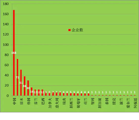 圖1 2015全球新能源企業(yè)500強國別分布圖