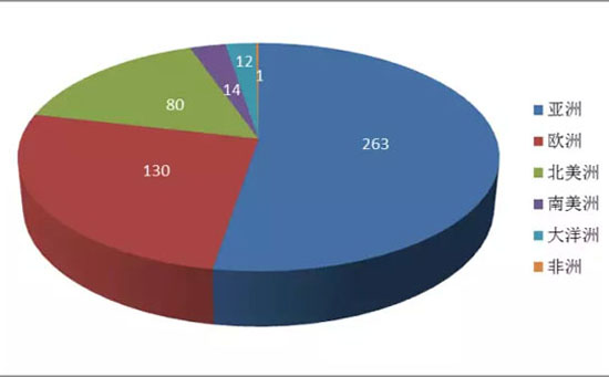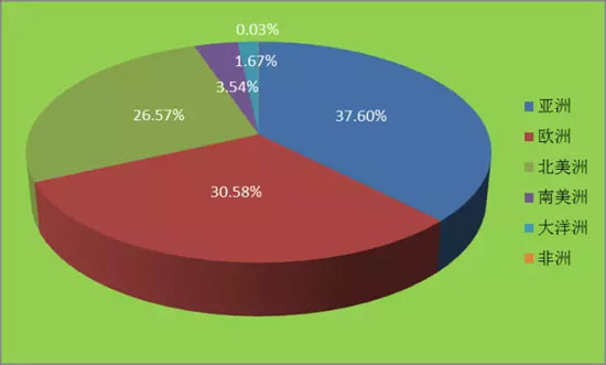 圖6 2015全球新能源企業(yè)500強各大洲入選企業(yè)數(shù)