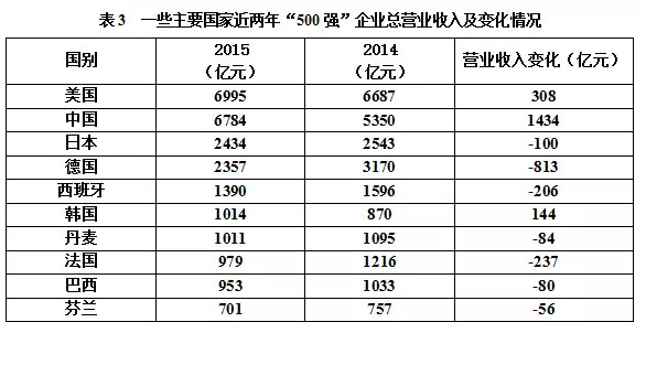 從上榜企業(yè)數(shù)看,2015“500強”企業(yè)中,新興市場國家上榜企業(yè)為234家,比2014的227家增加了7家;而發(fā)達國家上榜企業(yè)數(shù)為266家,比2014的273家減少了7家。新興市場國家與發(fā)達國家二者之間上榜企業(yè)數(shù)之比為1:1.17(上年則為1:1.20),差距進一步縮小。