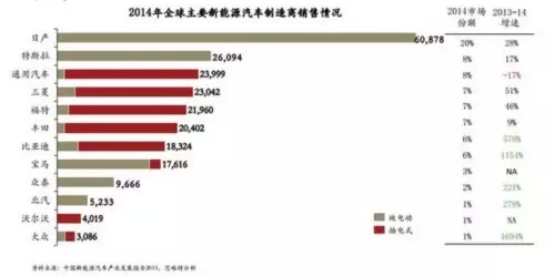 2014年全球主要新能源汽車制造商銷售情況