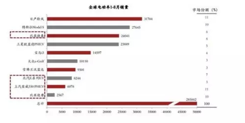 2015年1-8月,中國電動車制造商BYD、北汽、上汽旗下車型持續(xù)進入全球銷量前十。比亞迪的秦系列在8月份以3500臺成為全球電動車銷量冠軍。