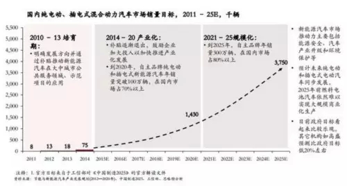 國內純電動、插電式混合動力汽車市場銷量目標