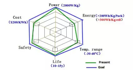 圖1 我國十三五電動汽車動力電池發展新目標(與現狀對照)(摘自黃學杰報告)