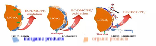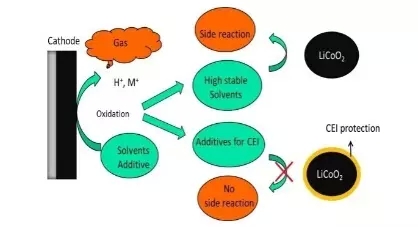 上述問題的解決方案是尋找更加穩定(不氧化)的溶劑或/和尋求正極/電解質界面的穩定方法-通過選擇添加劑來實現。