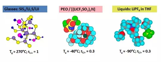 圖11 無機鹽固體電解質、聚合物固體電解質、有機液體電解質結構圖(取自Armand報告)