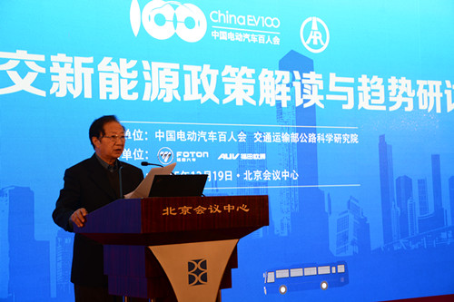 2015年12月19日,由中國電動汽車百人會與交通運輸部公路科學研究院聯合舉辦的“城市公交新能源政策解讀與趨勢研討會”在北京召開。