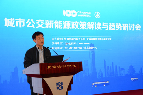 2015年12月19日,由中國電動汽車百人會與交通運輸部公路科學研究院聯合舉辦的“城市公交新能源政策解讀與趨勢研討會”在北京召開。