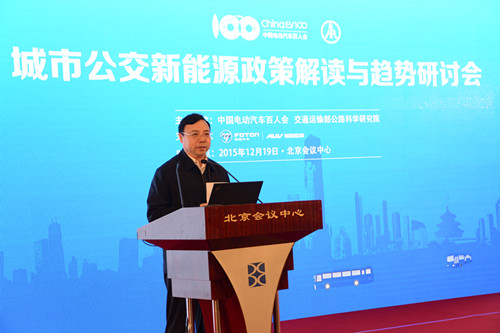2015年12月19日,由中國電動汽車百人會與交通運輸部公路科學研究院聯合舉辦的“城市公交新能源政策解讀與趨勢研討會”在北京召開。