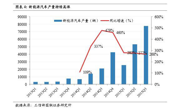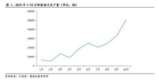 今年以來,新能源汽車的產銷呈現了井噴之勢。此外,《中國制造 2025》指明未來行業空間,2020年100萬輛可期。中國汽車工業協會副秘書長許艷華也稱,中國新能源汽車產業發展形勢喜人,今年實現全年新能源汽車銷量超越美國成為全球第一大新能源汽車市場幾無懸念。