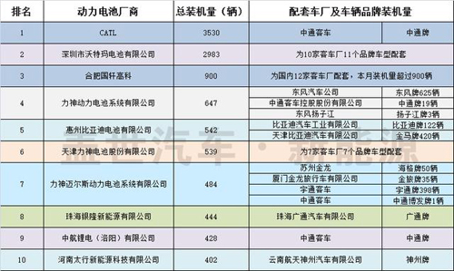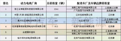 第五名的是合肥國軒高科,裝機量為664輛。其中江淮汽車生產(chǎn)的江淮牌電動車裝機量為655輛,湖南江南汽車制造公司生產(chǎn)的眾泰牌電動車裝機量為9輛。
