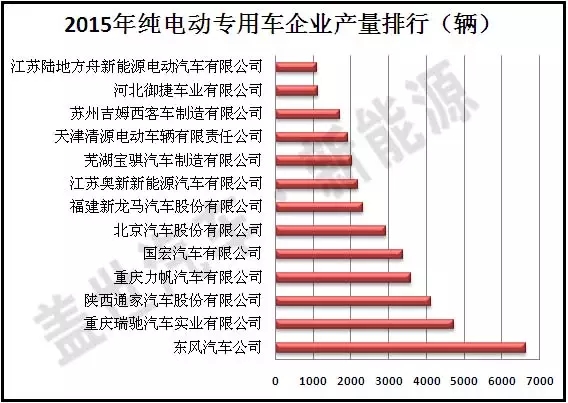 根據(jù)統(tǒng)計(jì),2015年有13家純電動(dòng)專用車生產(chǎn)企業(yè)全年產(chǎn)量超過1000輛。