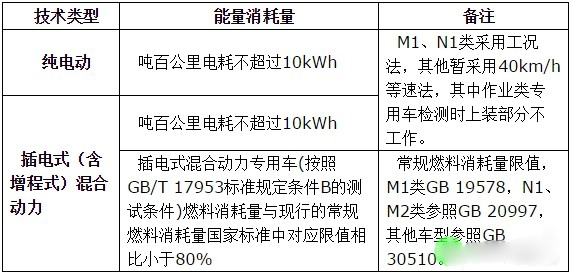 純電動(dòng)、插電式混合動(dòng)力(含增程式)專用車、貨車能量消耗量須符合以下要求: