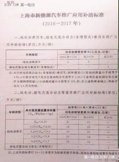 近日,記者從知情人處獲悉,上海市新能源汽車推廣應用補助標準(草案)已經制定,預計在近一兩周內就可以發(fā)布。相比去年,在純電動汽車方面的補貼大幅縮水,純電動汽車按照續(xù)駛里程不同補貼金額分別為150公里及以上3萬元、100公里到150公里之間1萬元,插電式混合動力乘用車(含增程式)補貼為1萬元。客車的推廣補助標準與國家的補助標準相接近。具體內容可見下圖,上海市新能源汽車補貼標準部分草案。