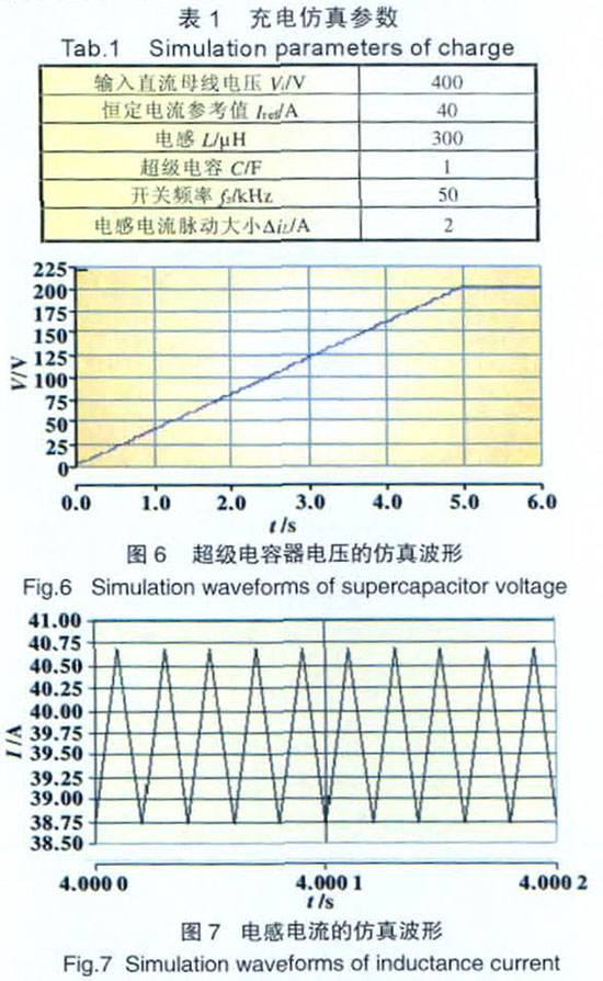 追求穩(wěn)定運(yùn)行、可靠供電的電力系統(tǒng)近幾年也引進(jìn)超級(jí)電容器作為新型儲(chǔ)能設(shè)備,使其在電力系統(tǒng)出現(xiàn)電壓波動(dòng)、短時(shí)間供電中斷等情況下快速充放電,從而保證系統(tǒng)的安全性及可靠性。目前對(duì)超級(jí)電容器在電力系統(tǒng)中應(yīng)用的研究才掀起熱潮,實(shí)用化的超級(jí)電容器充放電控制尚未成熟。本文將雙向DC-DC變換器應(yīng)用于超級(jí)電容器的充放電過程,對(duì)雙向控制模型分析,采用PWM的控制策略,并針對(duì)充放電情況的不同分別加裝PI及PID補(bǔ)償環(huán)節(jié),使系統(tǒng)比較穩(wěn)定,滿足絕大多數(shù)需要快速對(duì)超級(jí)電容器充放電的場(chǎng)合。