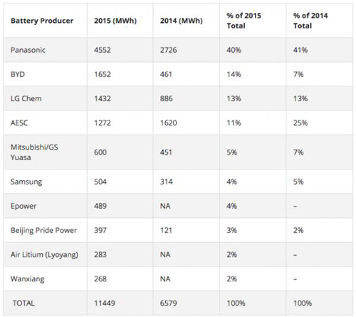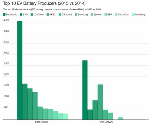 三星排在第六位,2015年銷量504兆瓦時(shí),其合作伙伴包括寶馬與菲亞特。排在第七位至第十位的分別是Epower、北京普萊德、中航鋰以及萬(wàn)向,他們都是來(lái)自中國(guó)的企業(yè)。